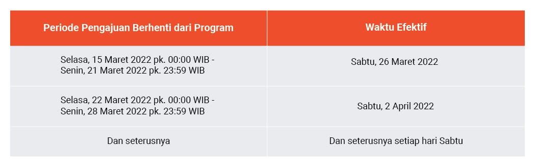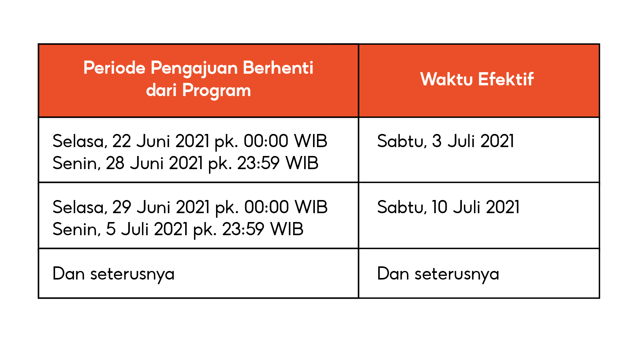Periode pengajuan pemberhentian program & waktu efektif pemberhentian layanan exposure & pengenaan biaya layanan: