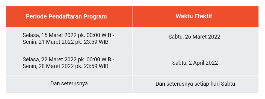 Periode pendaftaran program & waktu efektif layanan exposure & pengenaan biaya layanan: