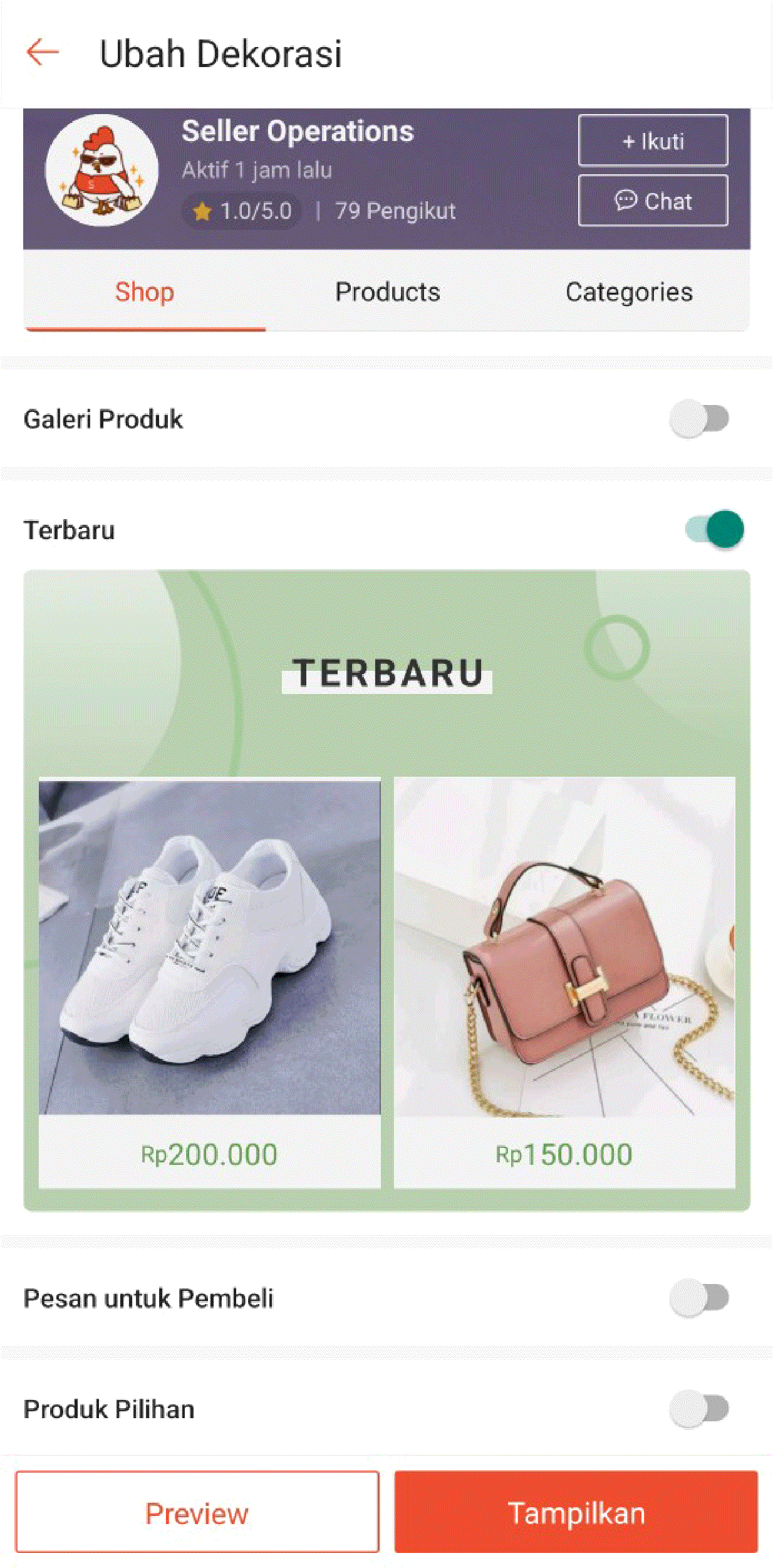 Meng-update Komponen Dekorasi Toko di Aplikasi Shopee