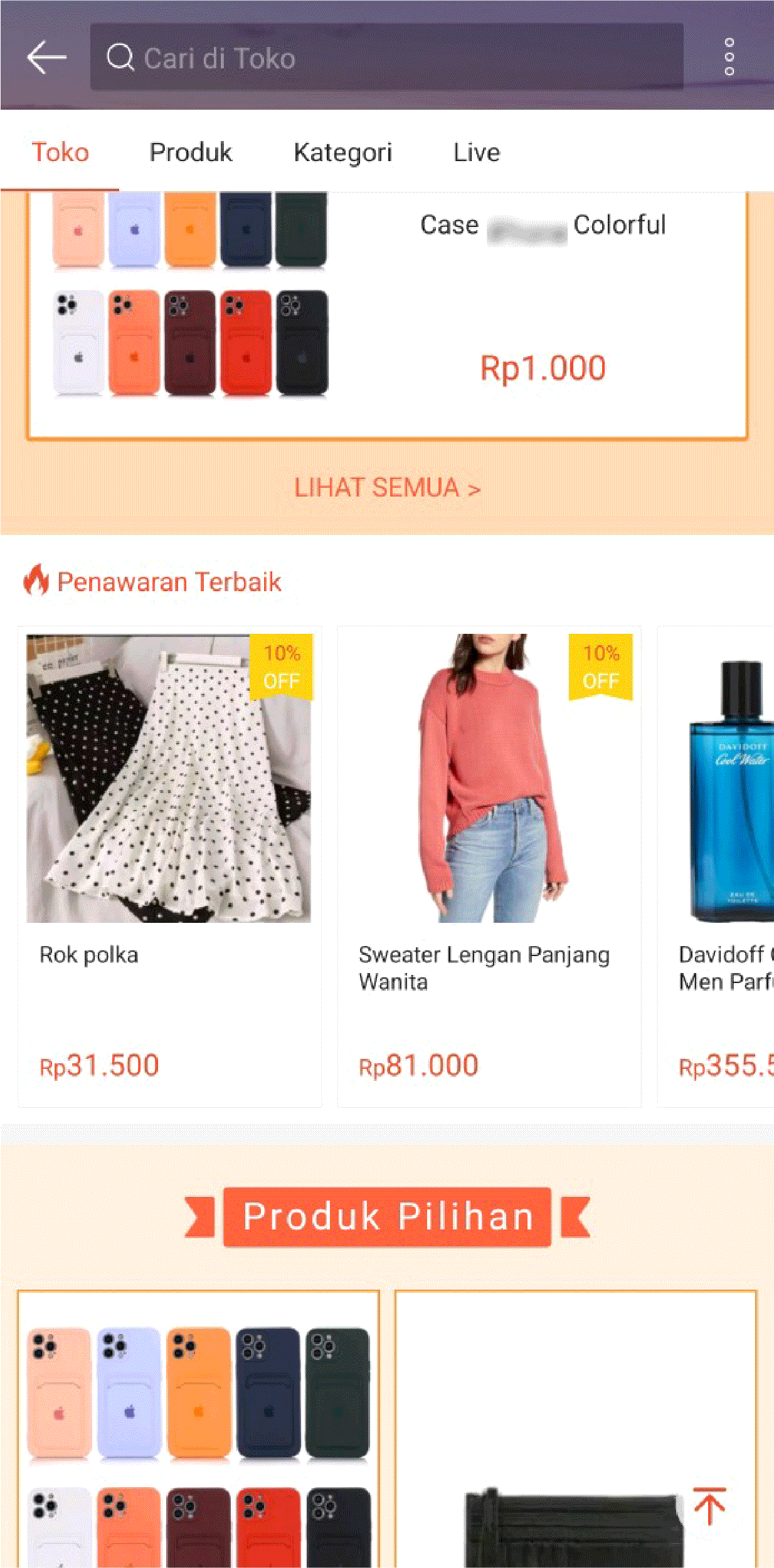 Tampilkan produk dari salah satu kategori di toko Anda.