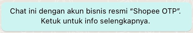 - WhatsApp resmi Shopee memiliki tanda centang hijau dan pesan resmi seperti gambar berikut: