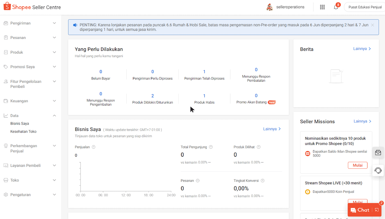 Halaman Data Real-time dapat diakses melalui Seller Centre dengan cara berikut: