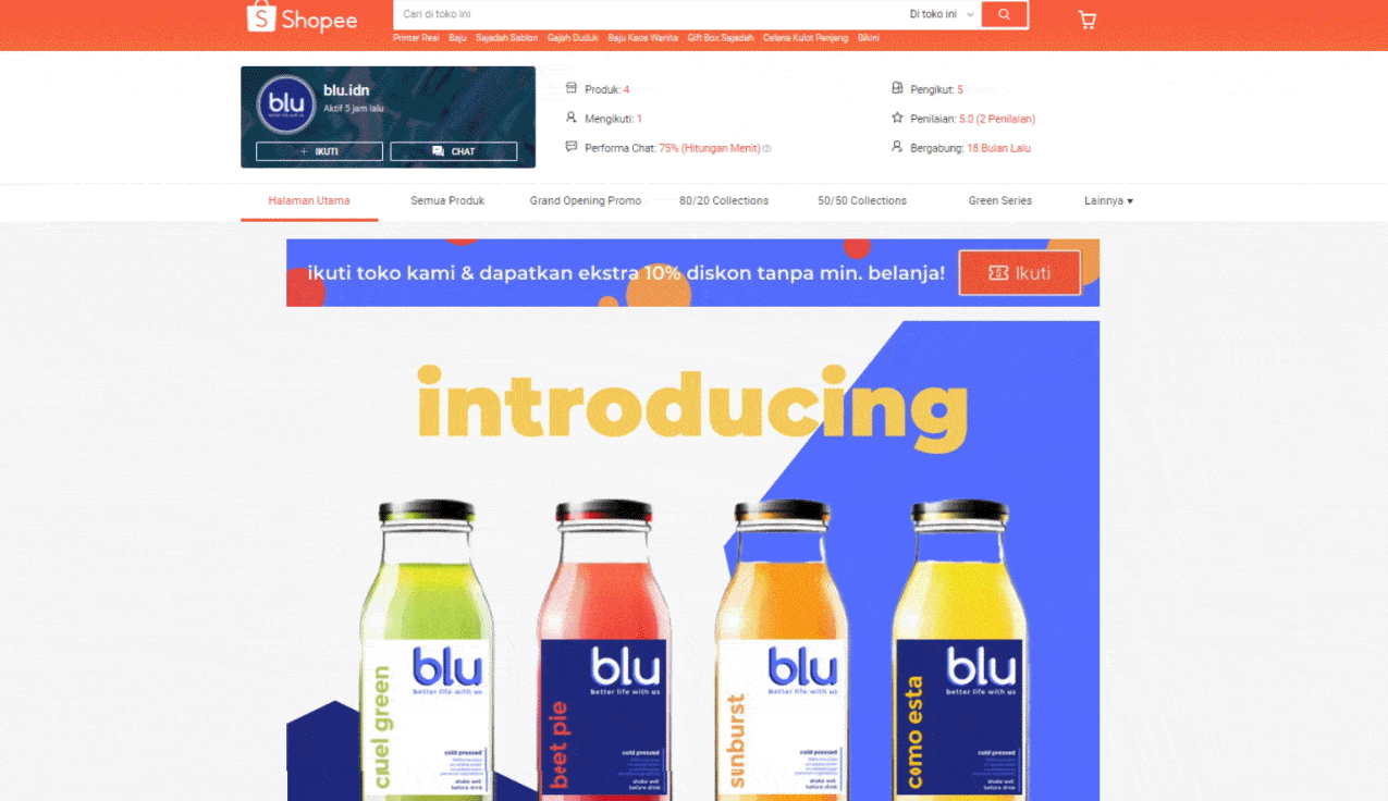 Halaman toko yang menarik dapat meningkatkan interaksi Pembeli serta menarik mereka untuk melihat lebih banyak produk & promosi toko Anda yang dapat meningkatkan konversi & penjualan.