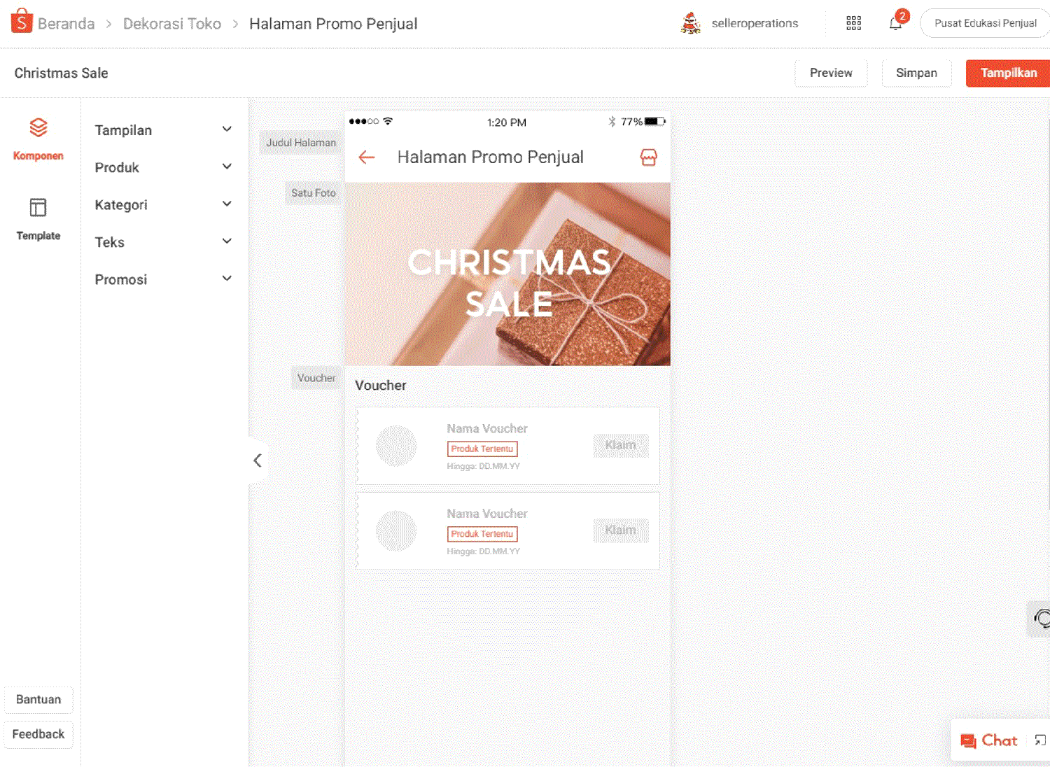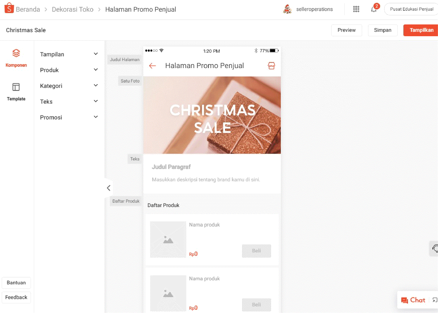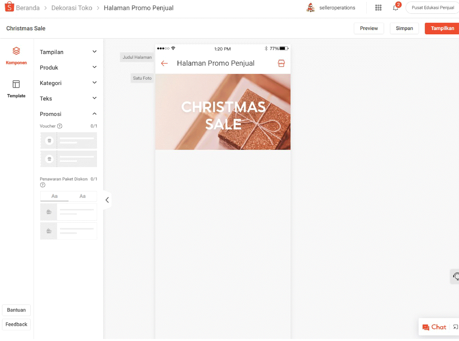 Proses dari membuat Halaman Promo Penjual sama dengan dekorasi halaman toko Anda dengan fitur Dekorasi Toko.
