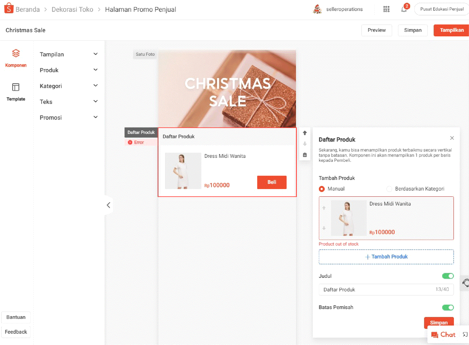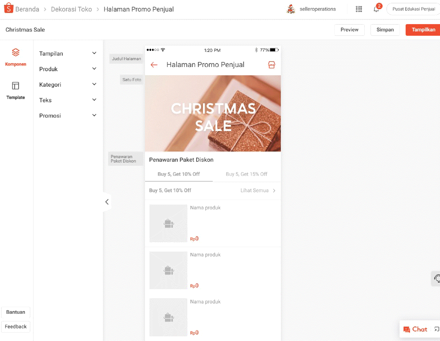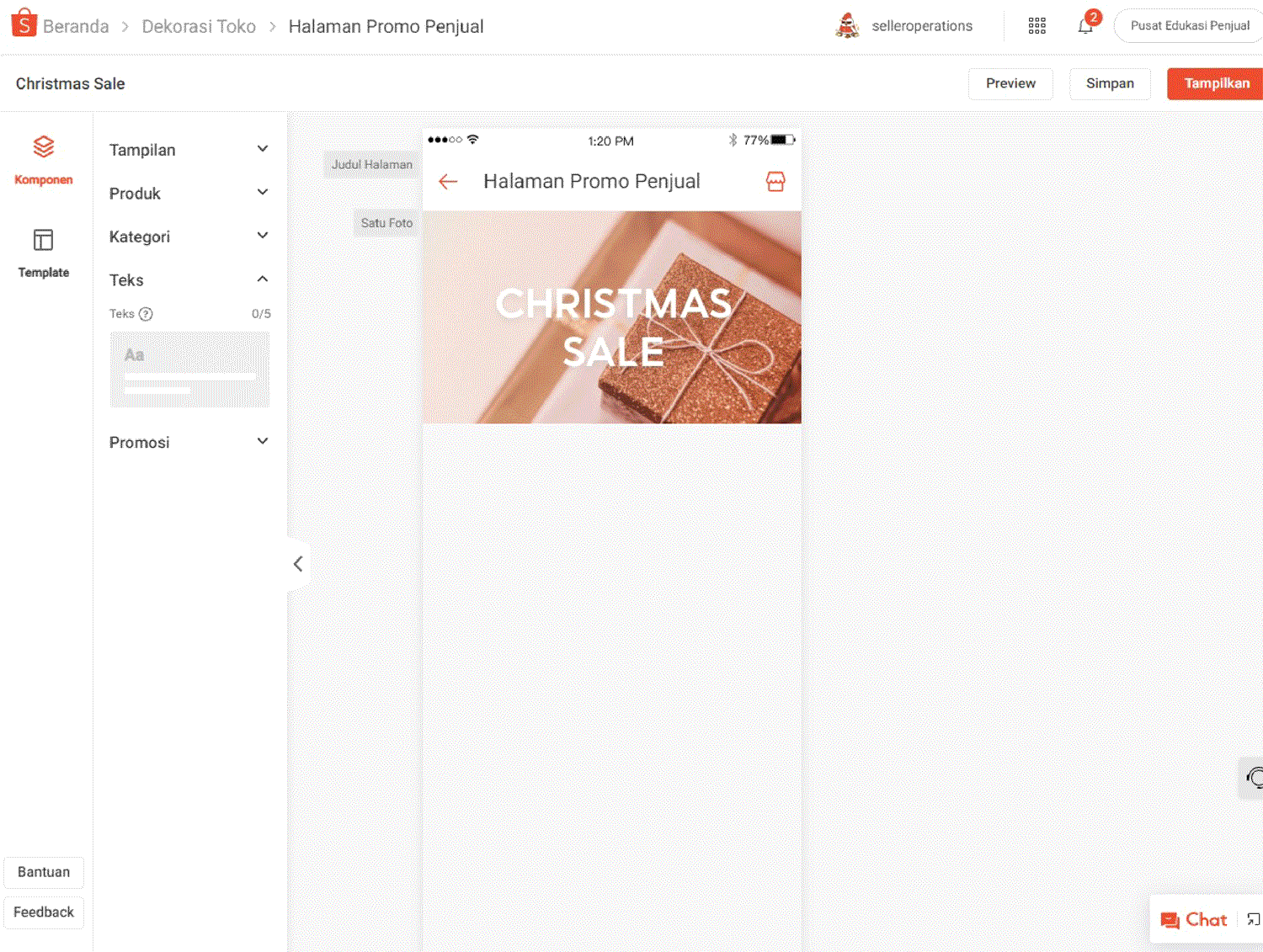 Proses dari membuat Halaman Promo Penjual sama dengan dekorasi halaman toko Anda dengan fitur Dekorasi Toko.