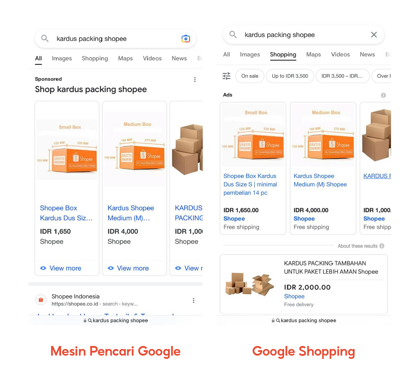 Iklan Google dengan Shopee akan memaksimalkan keberadaan produk dan toko Anda dengan menampilkannya pada mesin pencarian Google.