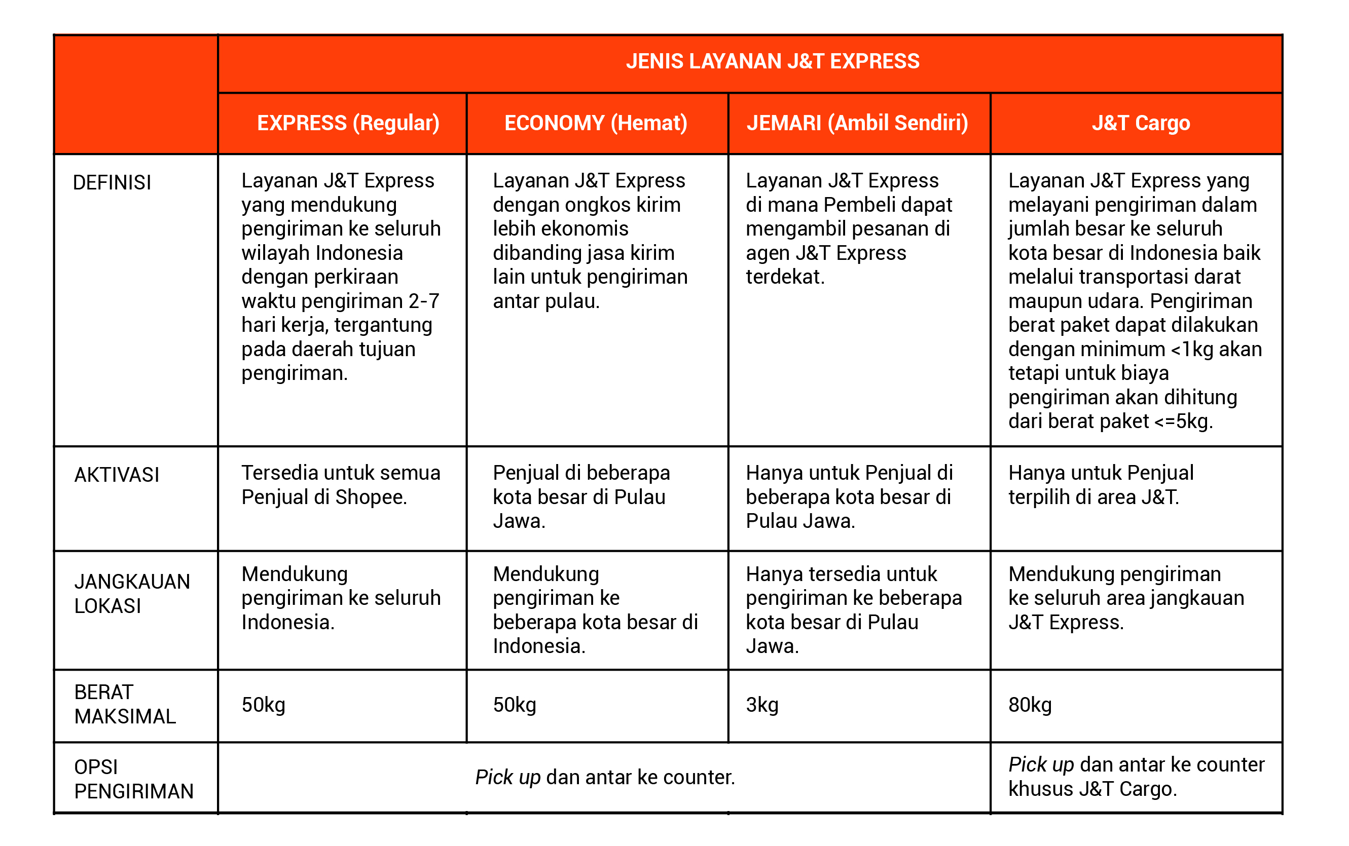 Memilih pick up untuk pengiriman dengan J&T Express, namun di sistem tertulis sebagai drop off | Hubungi J&T Express untuk melakukan pick up pesanan. Jika Anda telah memilih pick up dan ingin melakukan drop off (antar ke counter), Anda bisa langsung mendatangi J&T Express. | |
