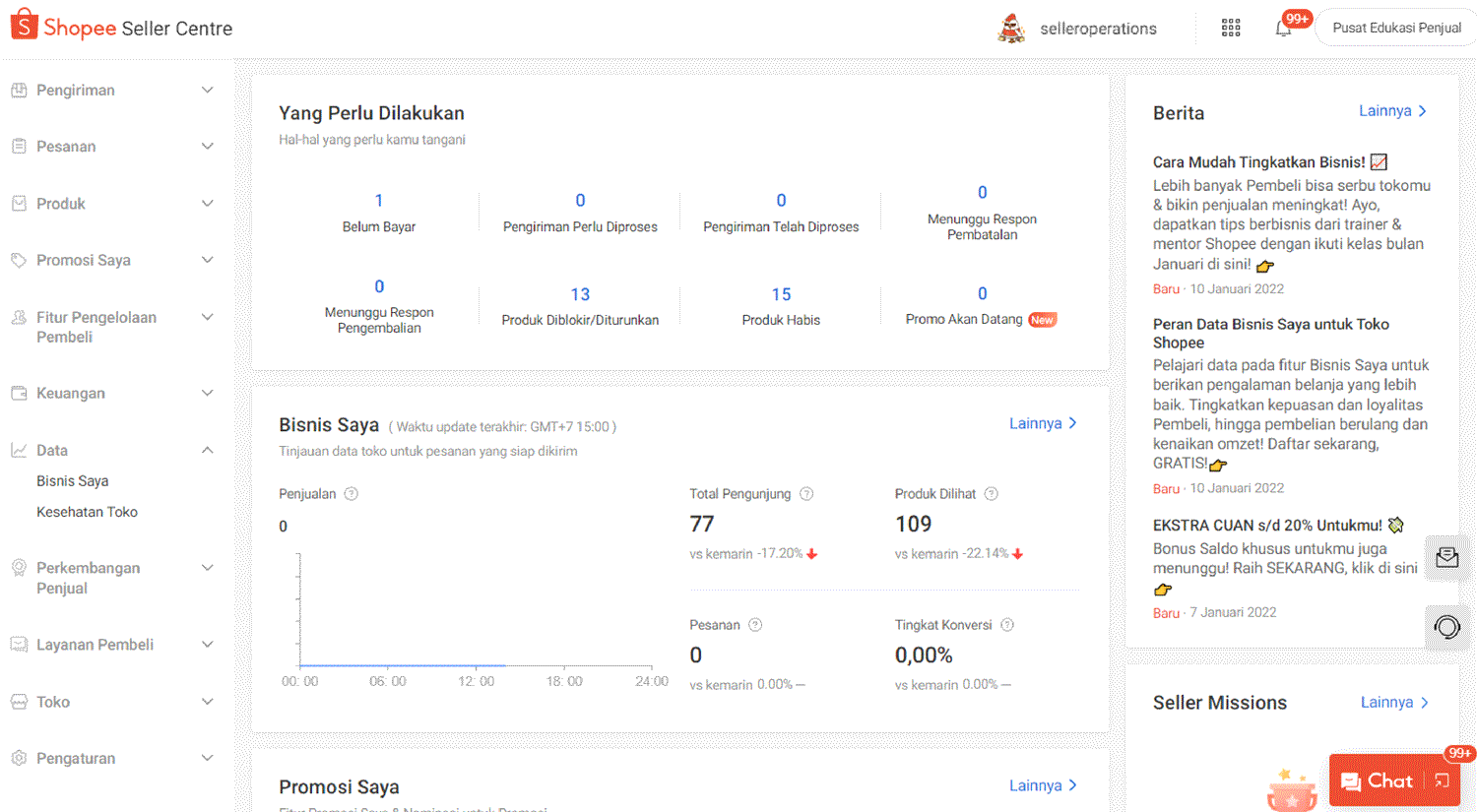 Untuk mengakses data Performa Produk, buka halaman Bisnis Saya melalui Seller Centre dan klik tab Produk.