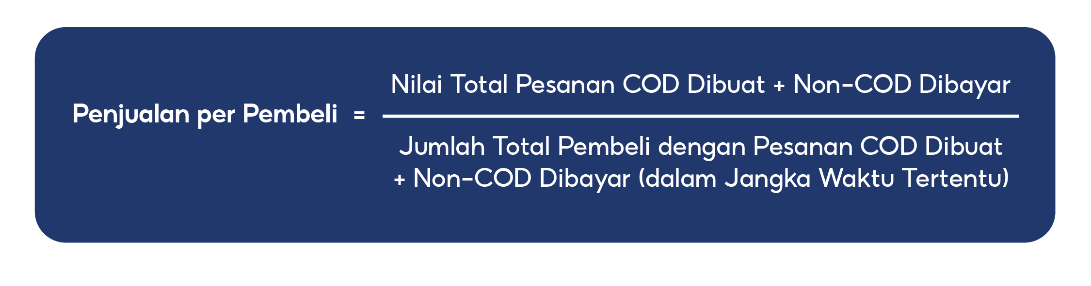 Penjualan per Pembeli adalah nilai rata-rata setiap pesanan yang dilakukan selama periode waktu tertentu. Untuk mengetahui nilai Penjualan per Pembeli, Anda dapat membagi Total Pesanan dengan Total Pembeli dalam periode waktu yang dipilih.