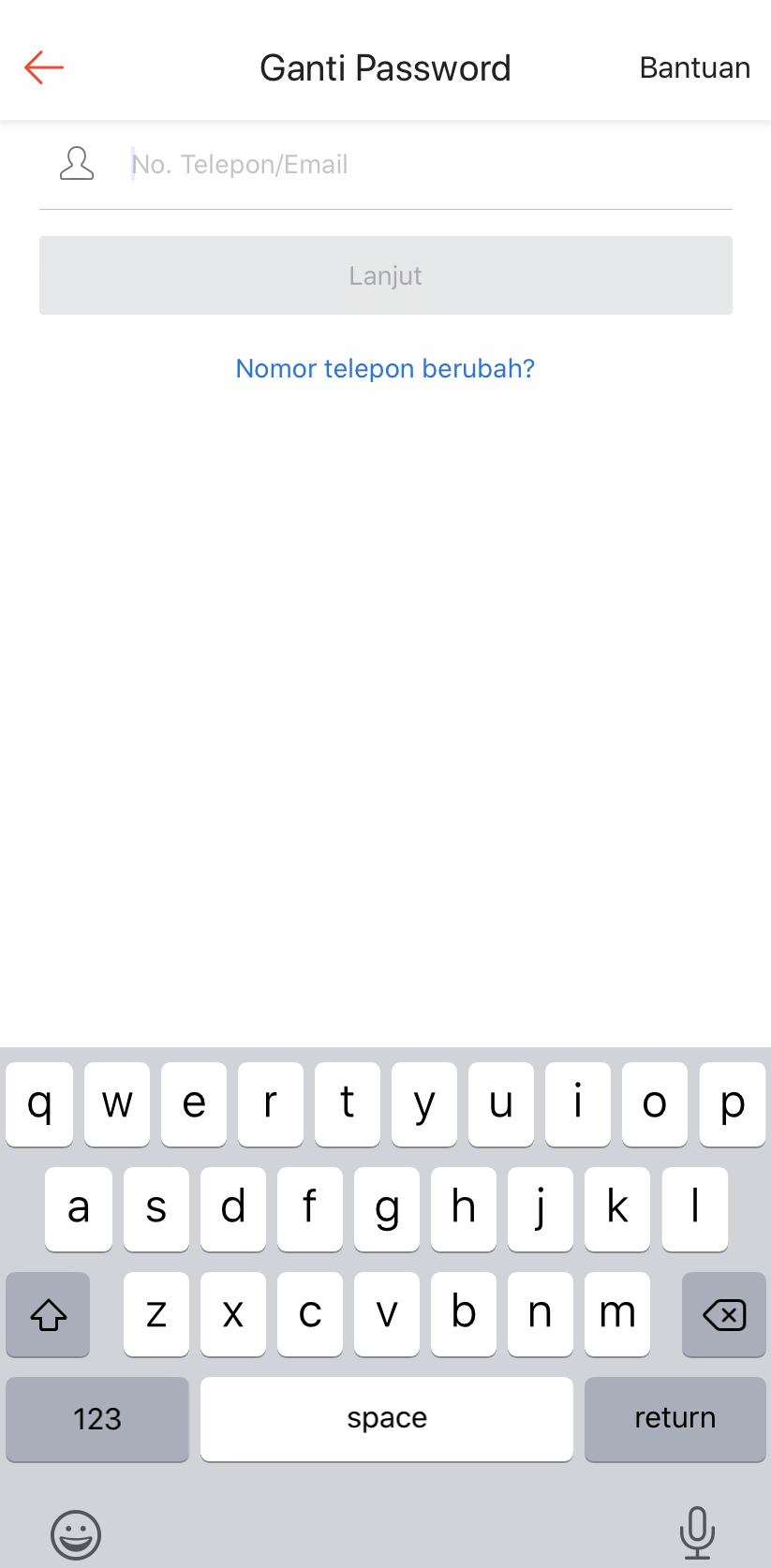 Jika menggunakan no. handphone, Anda akan diminta untuk memasukkan kode OTP yang dikirimkan ke no. handphone Anda melalui WhatsApp atau SMS untuk verifikasi perubahan password.