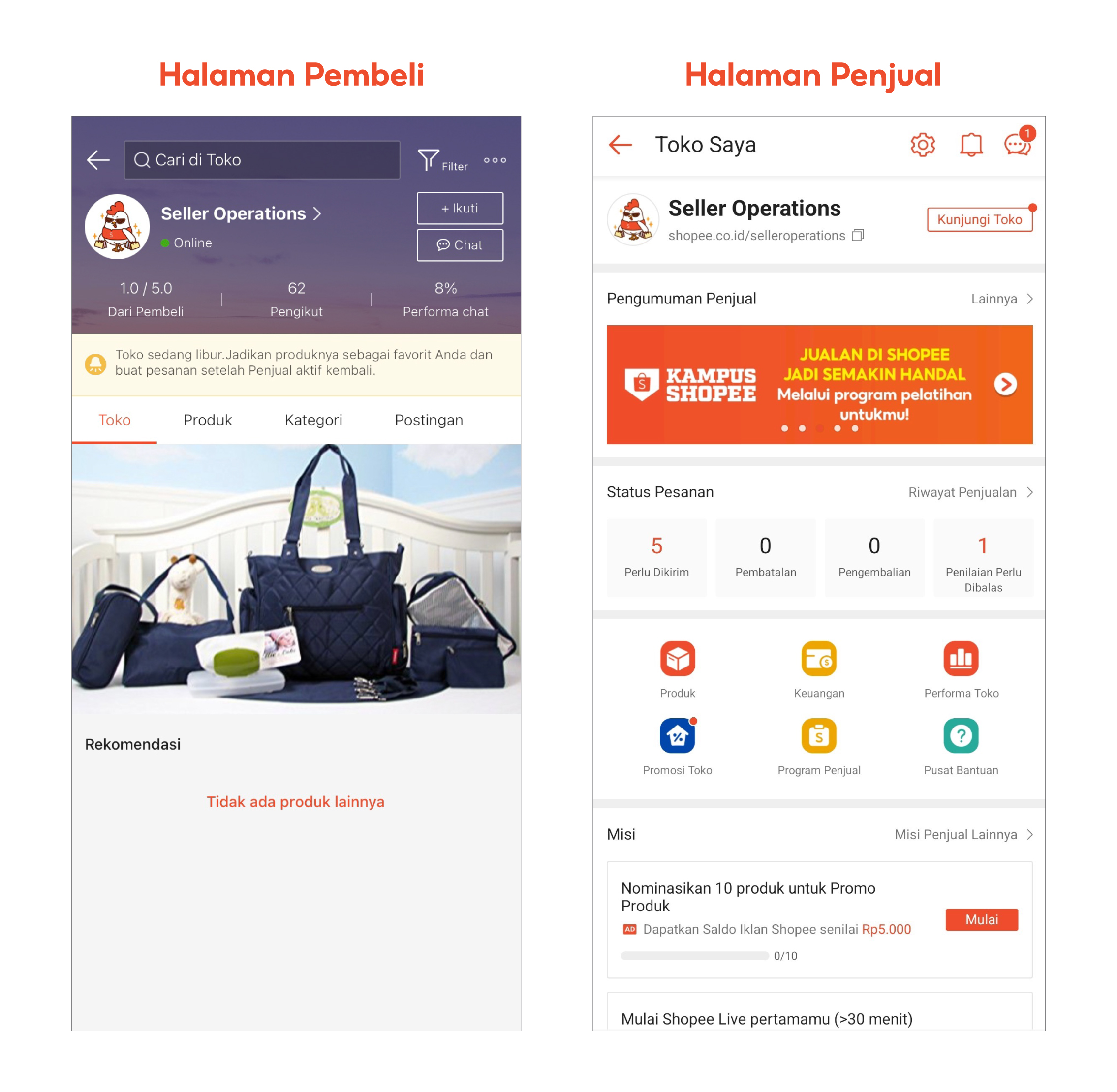 Fitur Toko Libur memungkinkan untuk menghentikan pesanan baru masuk di toko Anda untuk sementara. Dengan mengaktifkan fitur ini, produk dan toko Anda tidak dapat dicari pengguna lain, sehingga Pembeli tidak dapat membuat pesanan baru. Hal ini membantu Anda menghindari batas waktu pengiriman yang terlewat saat Anda libur.