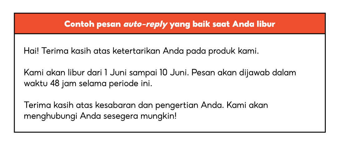 Pesan auto-reply yang baik saat Anda libur harus menyertakan hal berikut: