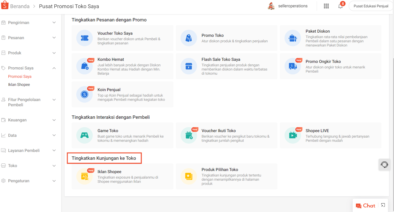 Ada tiga tipe Iklan Shopee yang dapat dipilih di halaman Promosi Saya: