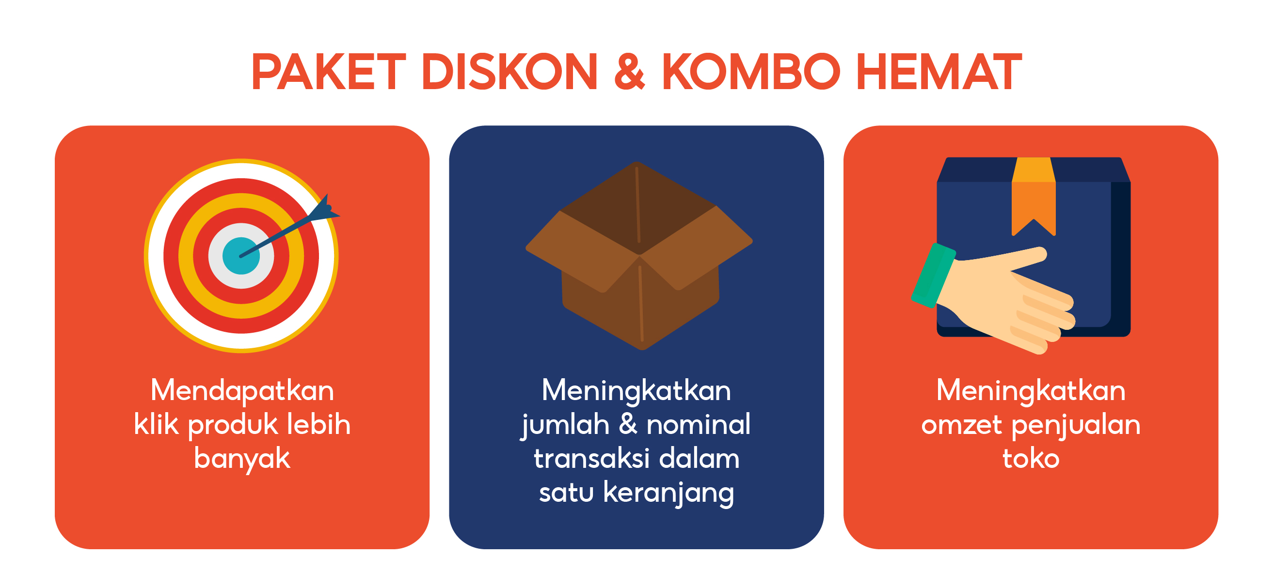 Paket Diskon merupakan jenis promosi yang dapat membantu Anda untuk menjual lebih banyak produk dalam satu pesanan. Paket Diskon cocok digunakan untuk jenis produk yang saling melengkapi. Dengan Paket Diskon, Pembeli akan membeli produk-produk pelengkap yang ditawarkan karena merasa diuntungkan dengan harga yang lebih murah.