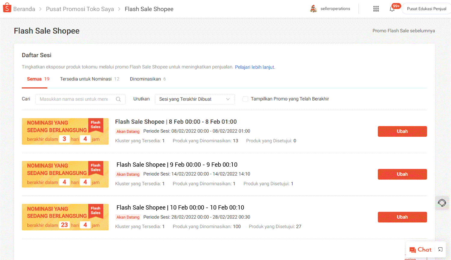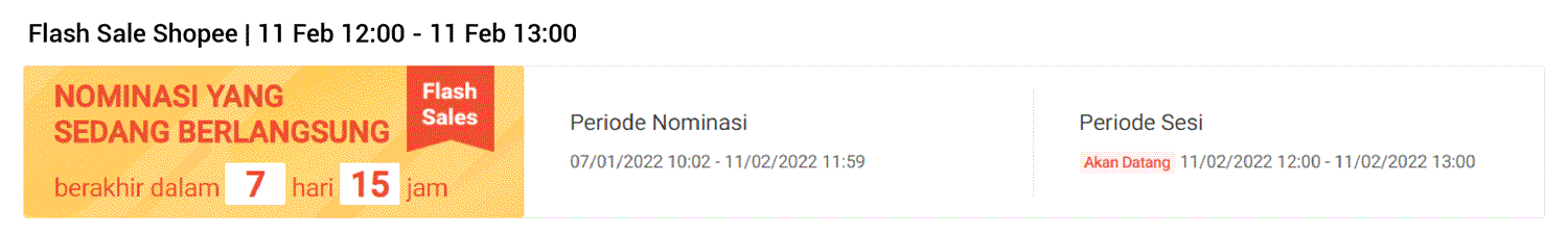 - Undangan nominasi Flash Sale Shopee dengan tanggal tampil hingga 6 Maret 2022 akan dipindahkan ke halaman terpisah yang dapat diakses melalui tombol Promo Flash Sale sebelumnya.