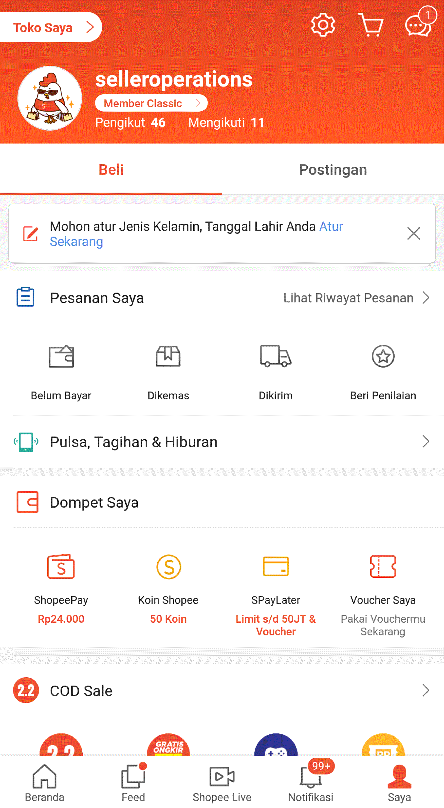 - Restart handphone dan masuk ke akun Shopee Anda lagi setelah 1-2 jam.