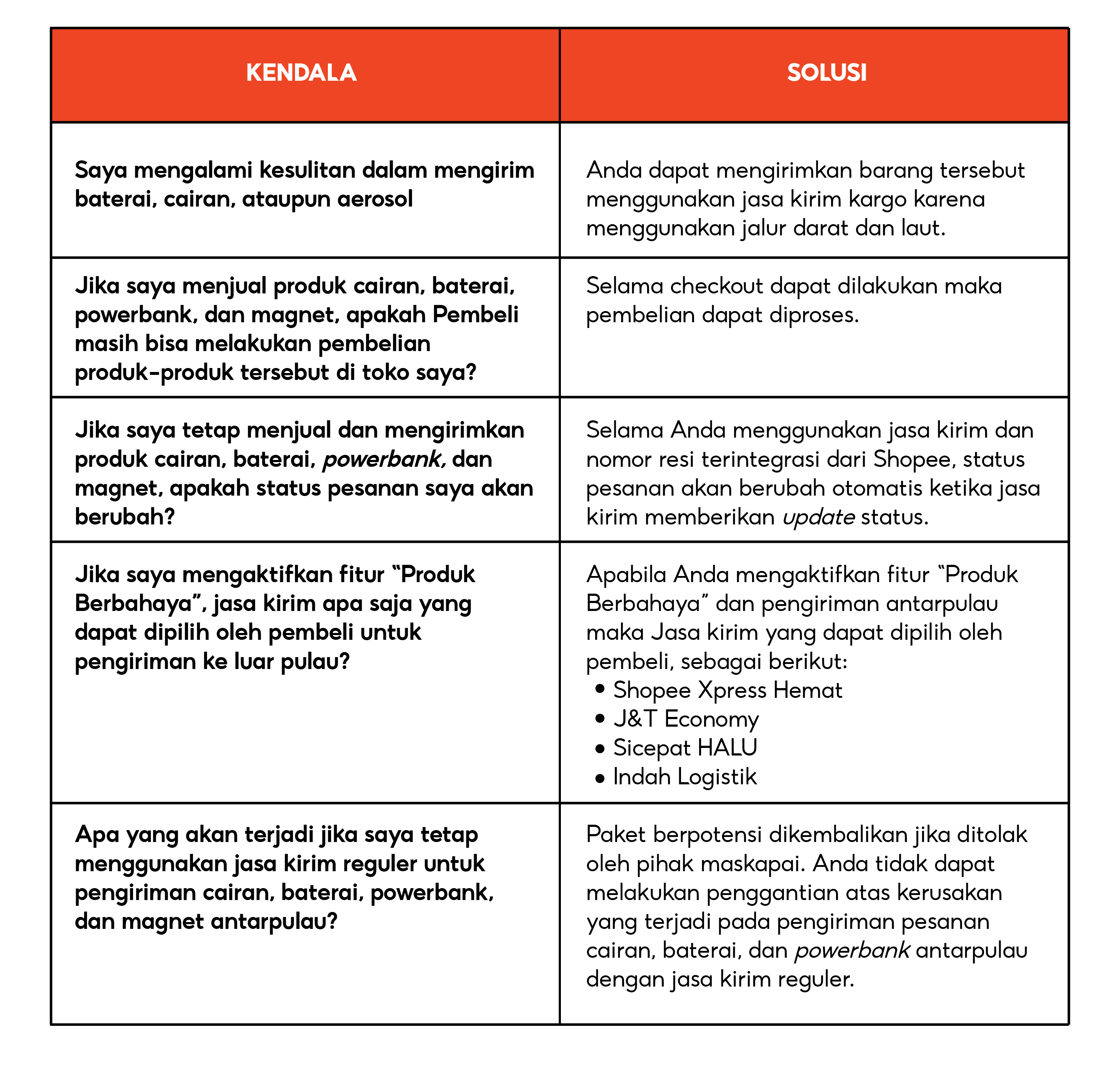 Pengiriman Produk Berbahaya (Cairan, baterai, powerbank dll.)