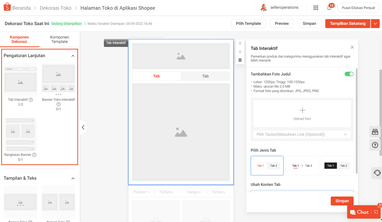 - Komponen Pengaturan Lanjutan hanya tersedia untuk Penjual terpilih.