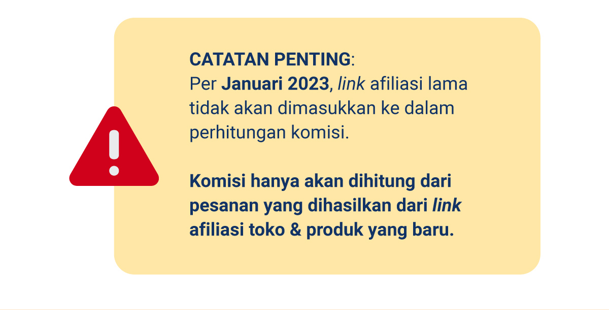 Per 11 Agustus, link afiliasi berubah menggunakan link baru. Pastikan Penjual membagikan link afiliasi baru untuk mendapatkan komisi setiap minggunya. Simak caranya di bawah ini: