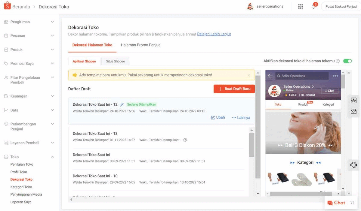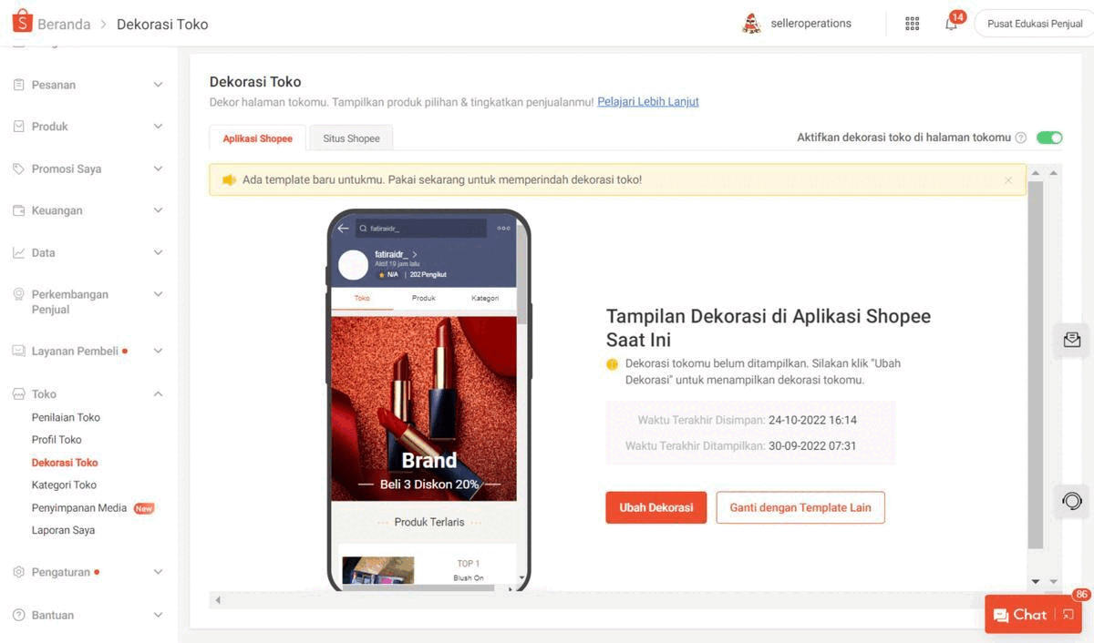 Seller Centre (Peningkatan Dekorasi Toko)