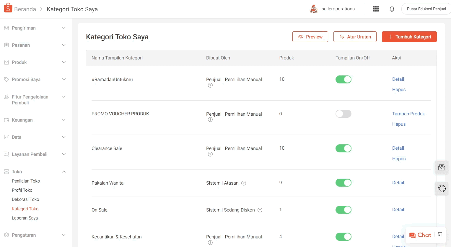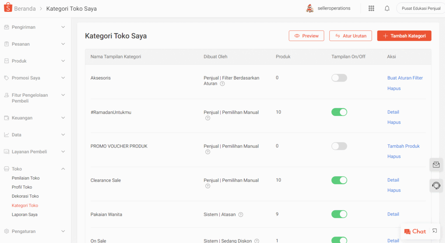 Anda dapat mengatur Kategori Toko melalui halaman Kategori Toko pada menu Toko di Seller Centre. Dengan membuat Kategori Toko, tampilan produk Anda akan terlihat lebih teratur. Anda juga dapat menampilkan promosi yang sedang berlangsung, serta menunjukkan produk terlaris di masing-masing kategori yang Anda buat.