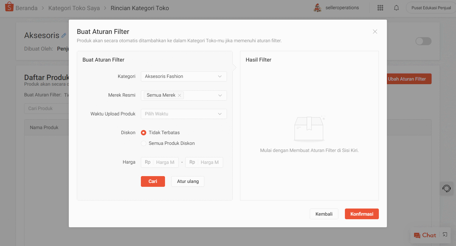 Mengatur Filter Berdasarkan Aturan Kategori Toko