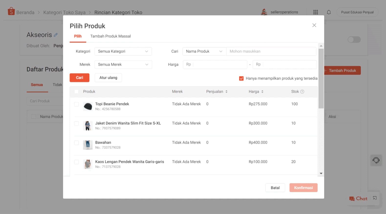 - Pemilihan Manual: Pilih secara manual produk yang ingin Anda tambahkan ke Kategori Toko Anda.
