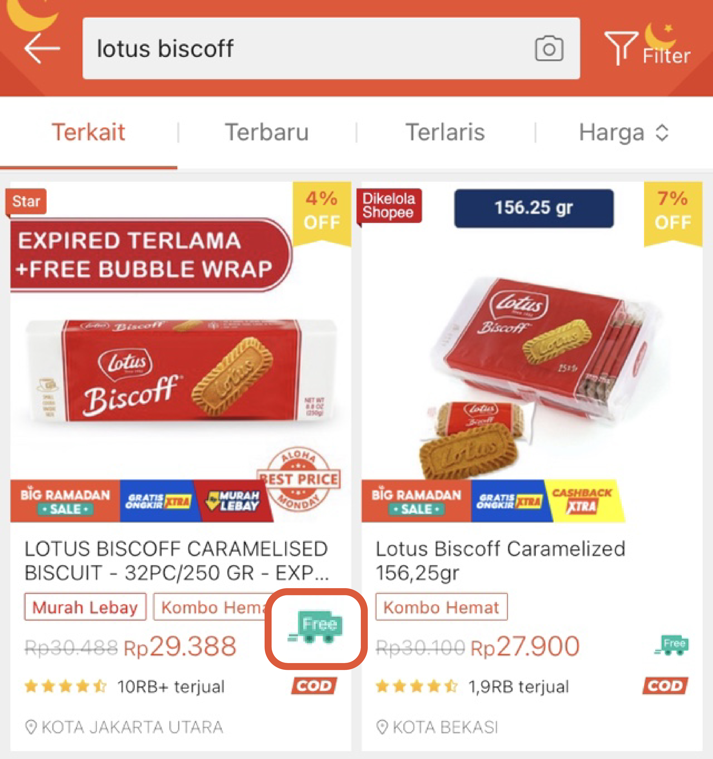 3. Filter pencarian Gratis Ongkir.
