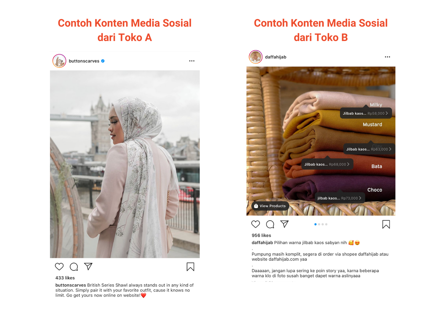 Setiap toko memiliki cara yang berbeda dalam memikat minat Pembeli sesuai dengan buyer persona masing-masing toko. Sesuai dengan gambaran contoh di atas, Toko A akan lebih mengutamakan kualitas produk untuk memikat minat Pembeli yang tidak terlalu mempermasalahkan harga. Sedangkan, Toko B akan lebih mengutamakan harga yang terjangkau dan memperbanyak promosi agar produknya dapat dijangkau oleh semua kalangan.