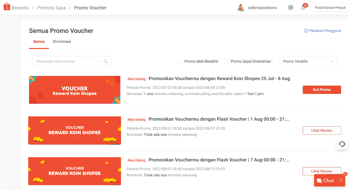 Promo: Event utama dimana Anda akan menominasikan Voucher Toko Anda ke dalamnya.