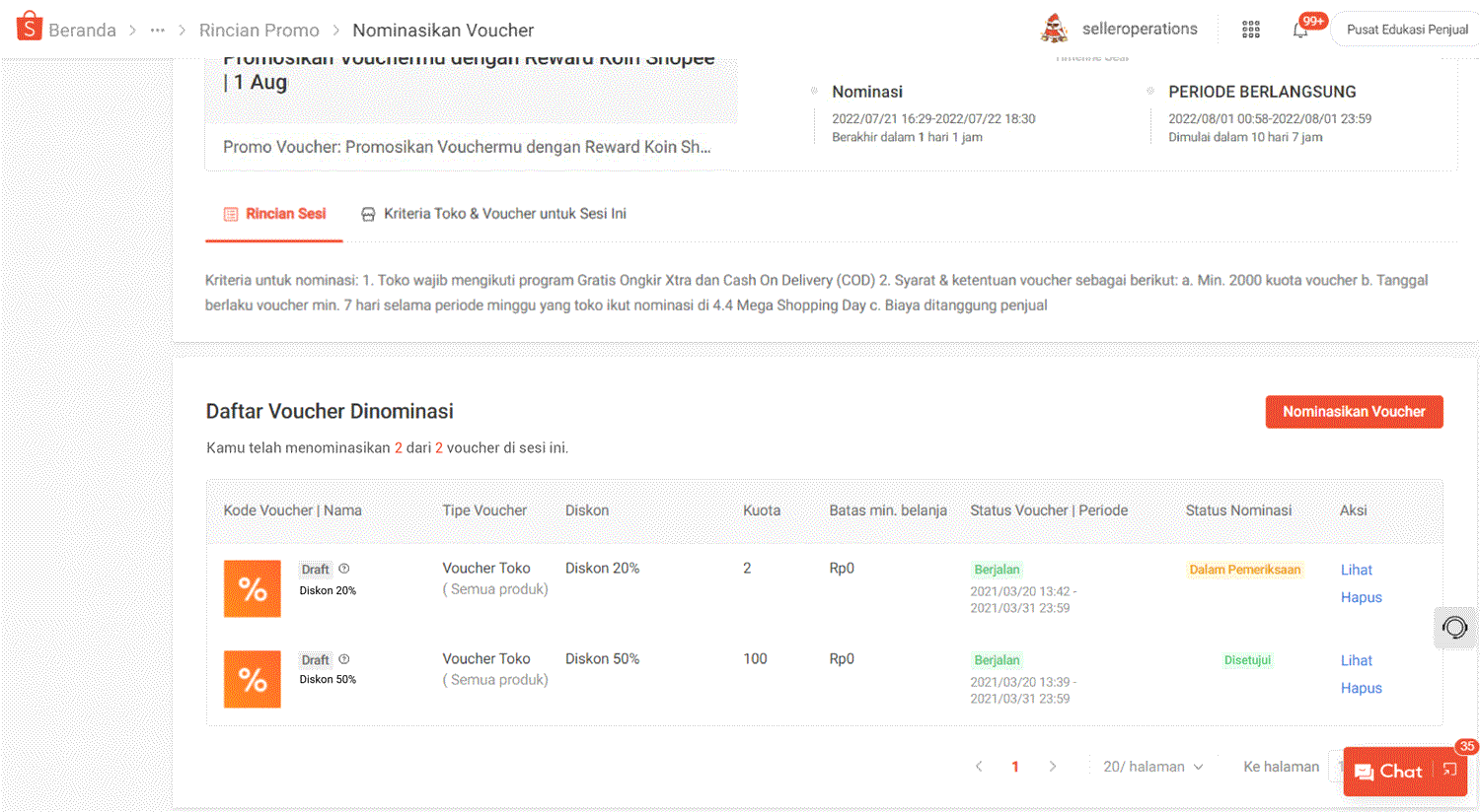 - Khusus untuk periode 2 (tanggal 25-8 di setiap bulannya) Penjual harus menominasikan Voucher yang sama pada semua sesi yang tersedia.