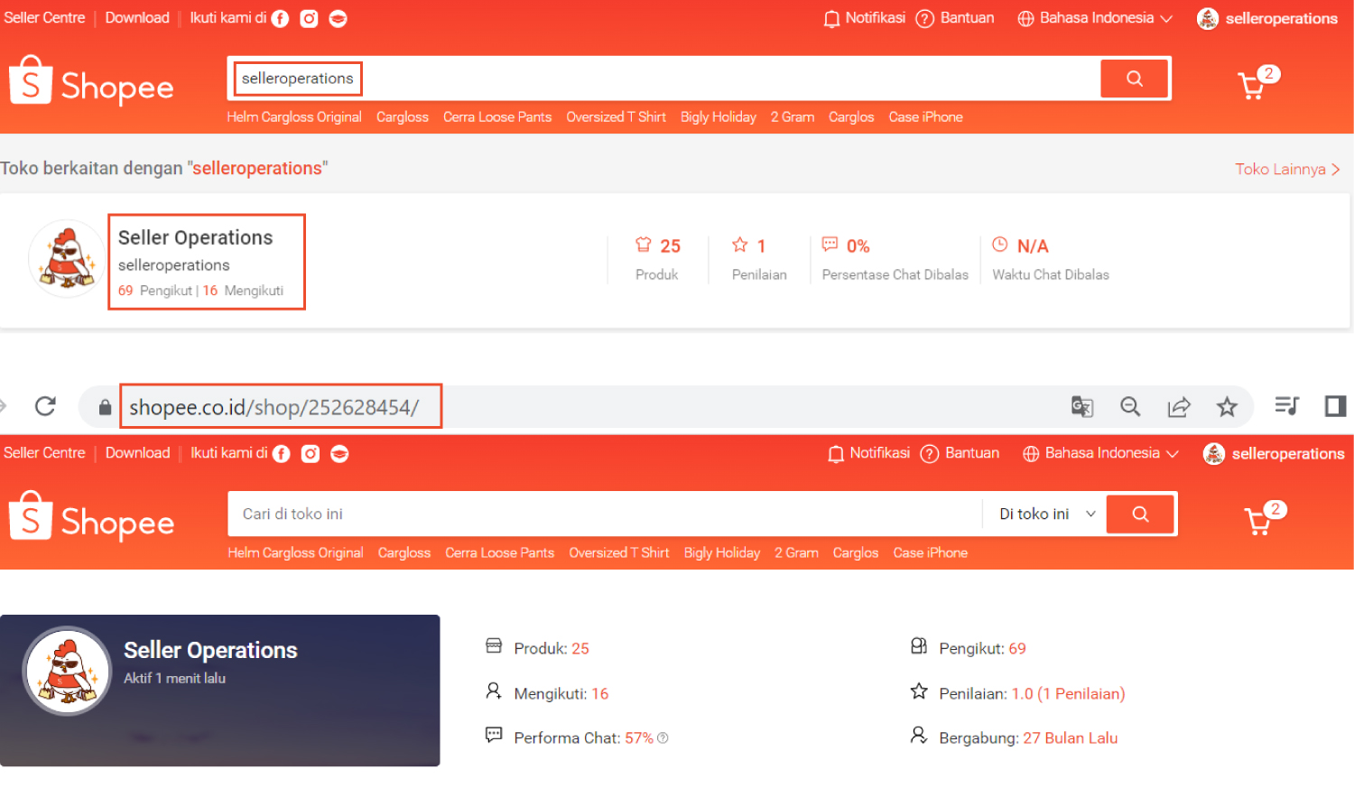 - Tuliskan username toko di kolom pencarian.