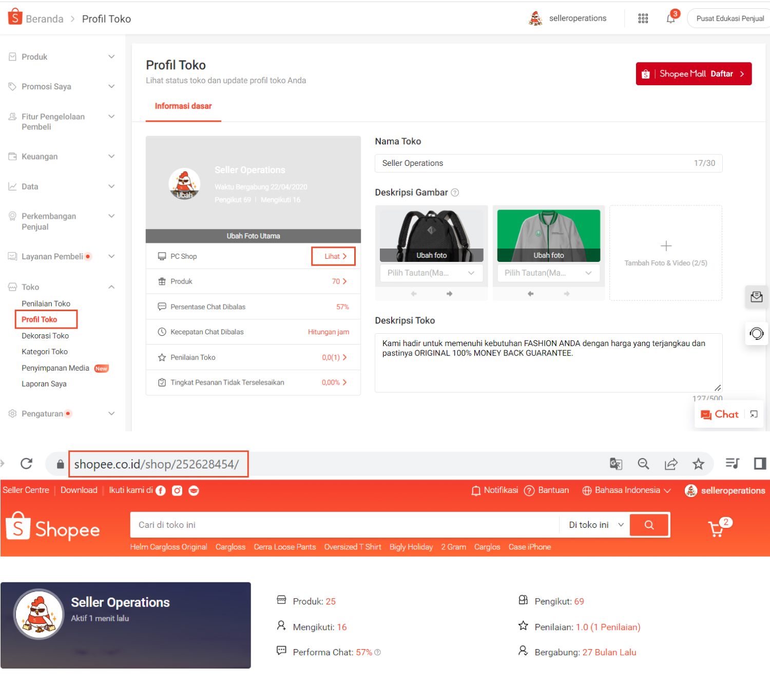 - Anda akan langsung dialihkan ke halaman toko dan link toko dapat ditemukan pada kolom alamat.