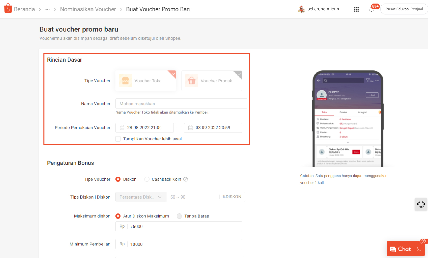 - Nama Voucher: Hanya sebagai referensi untuk Penjual & tidak akan ditampilkan ke Pembeli.