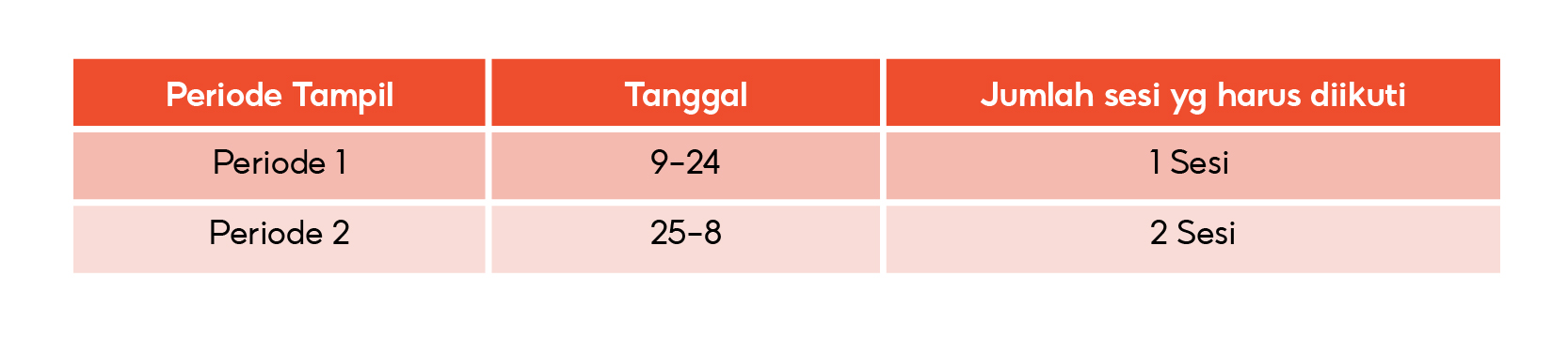 Sesi: Slot yang tersedia di dalam promo dengan jadwal tertentu.