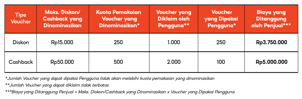 Semua biaya Voucher Toko yang ditampilkan dalam Flash Voucher ditanggung sepenuhnya oleh Penjual. Berikut merupakan ilustrasi perhitungan biaya Voucher Toko yang ditampilkan dalam Flash Voucher: