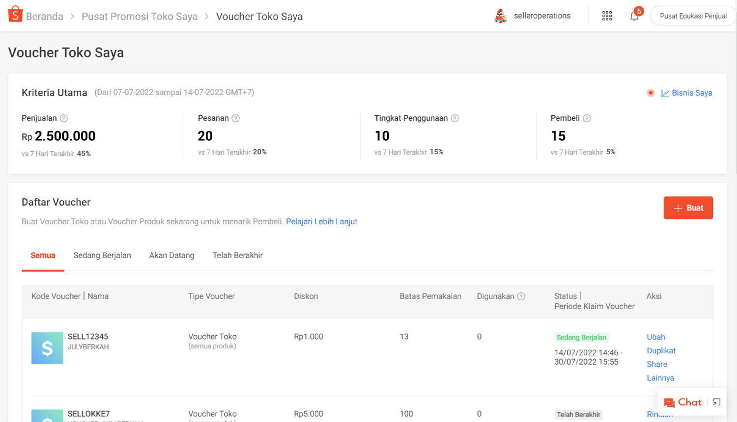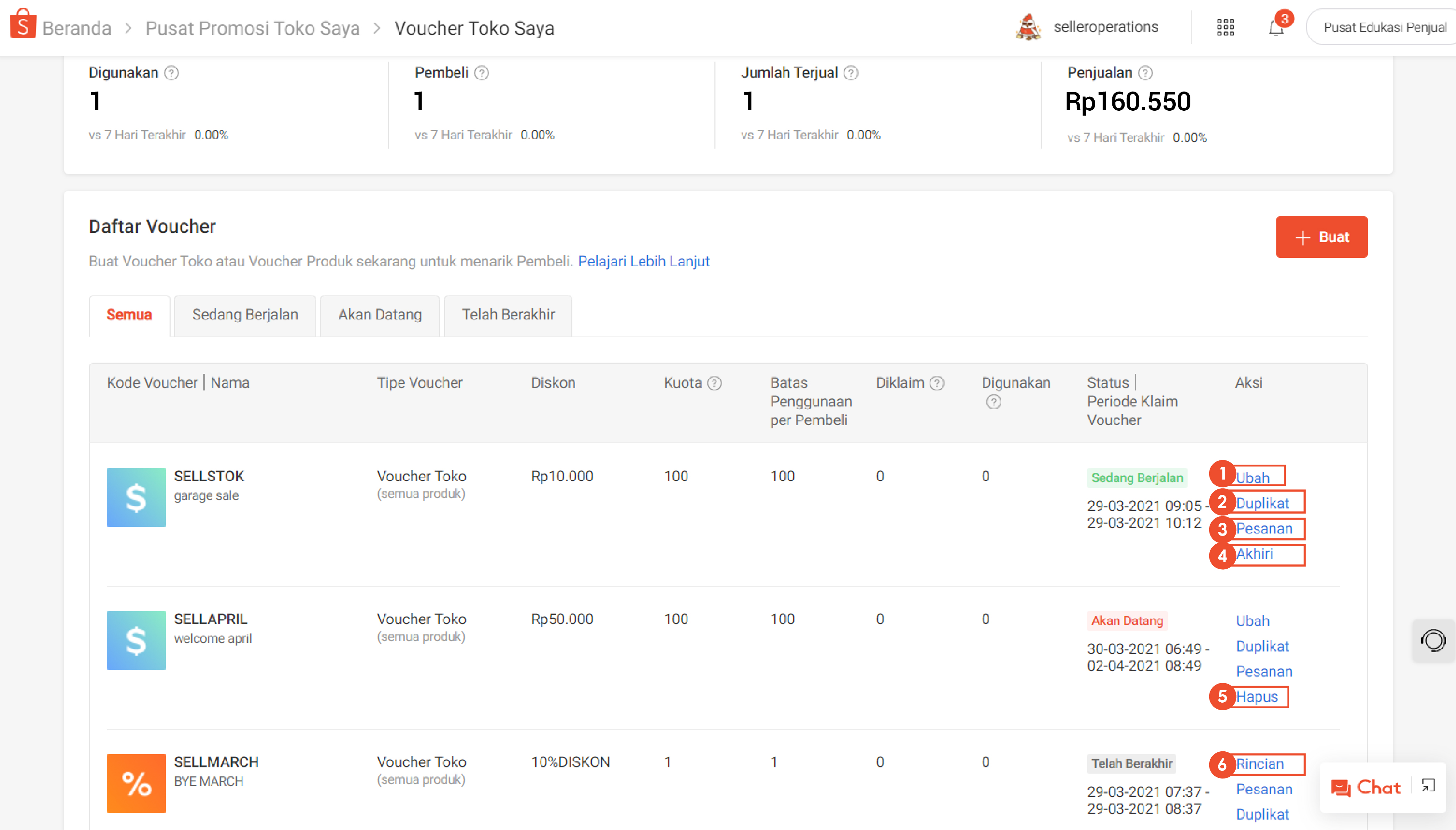 Fungsi ini hanya dapat dilakukan di Seller Centre dan berguna untuk membuat ulang voucher yang efektif dan hemat biaya.