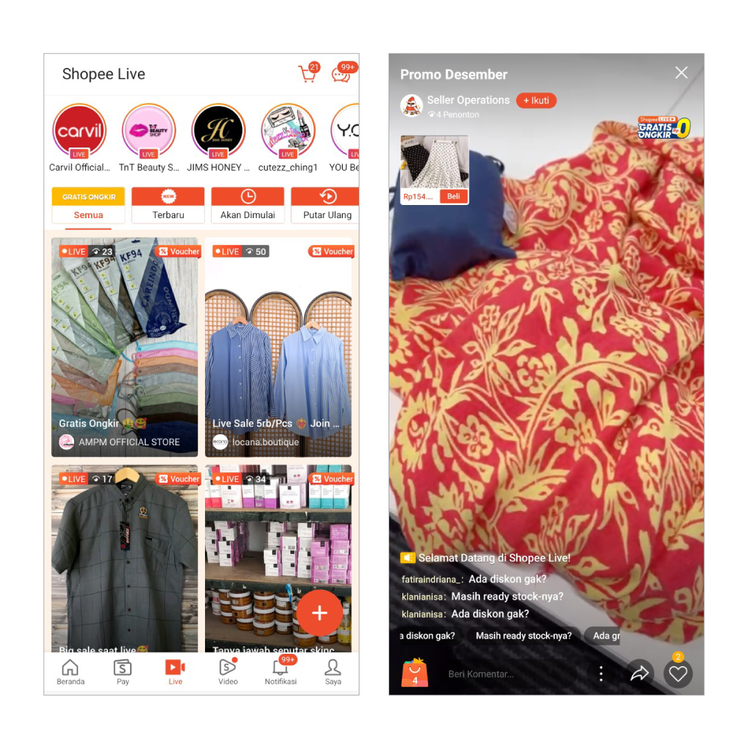 - Streaming akan ditampilkan di halaman utama aplikasi Shopee.