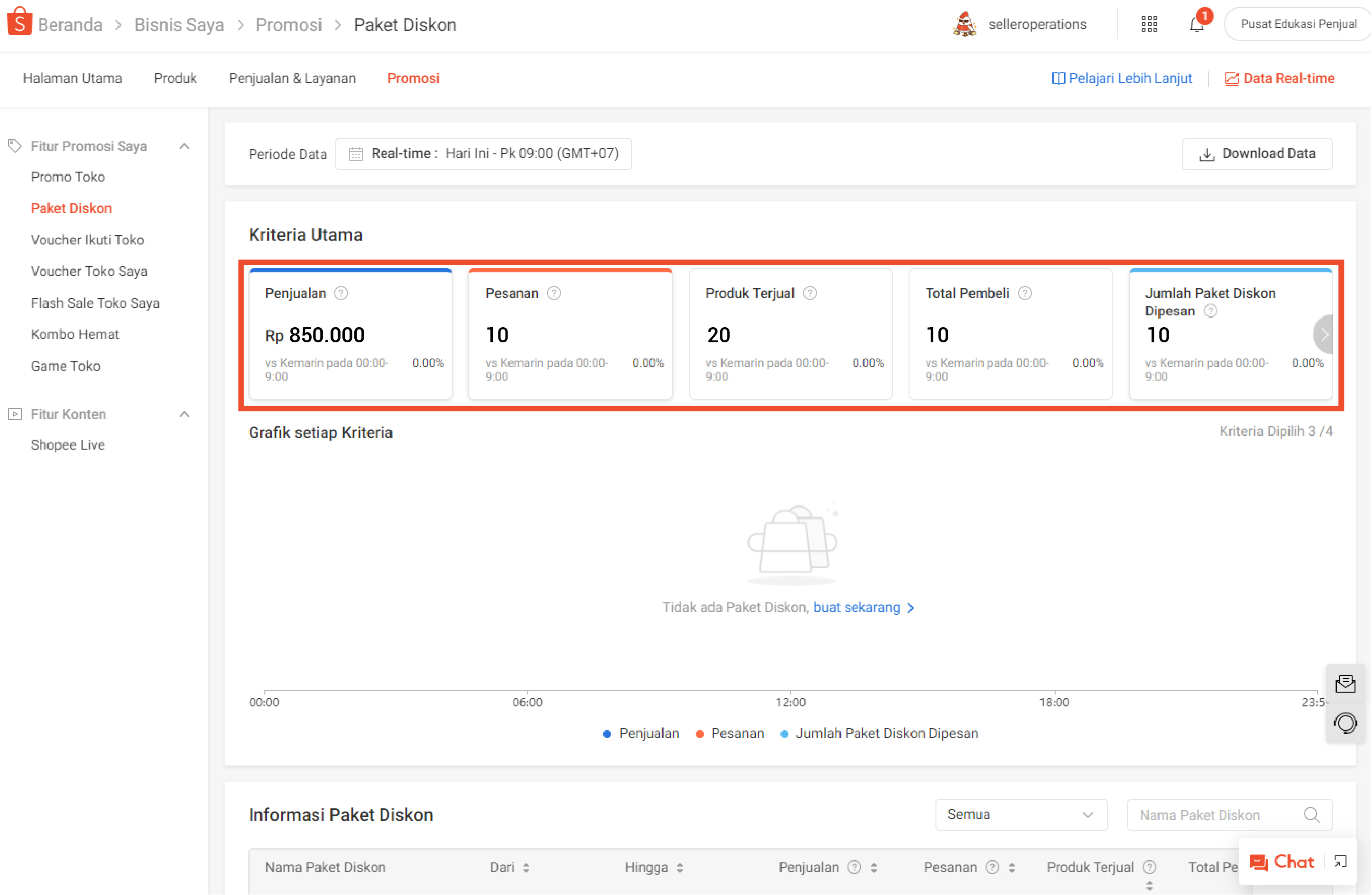 Anda dapat melihat ringkasan sederhana Paket Diskon yang telah Anda buat pada bagian Kriteria Utama di halaman Paket Diskon.
