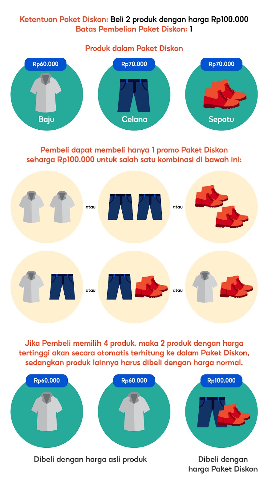 - Produk yang sama - Pilihlah satu produk tertentu agar Pembeli membeli produk tersebut dalam jumlah yang banyak dan dapat menikmati promo Paket Diskon.
