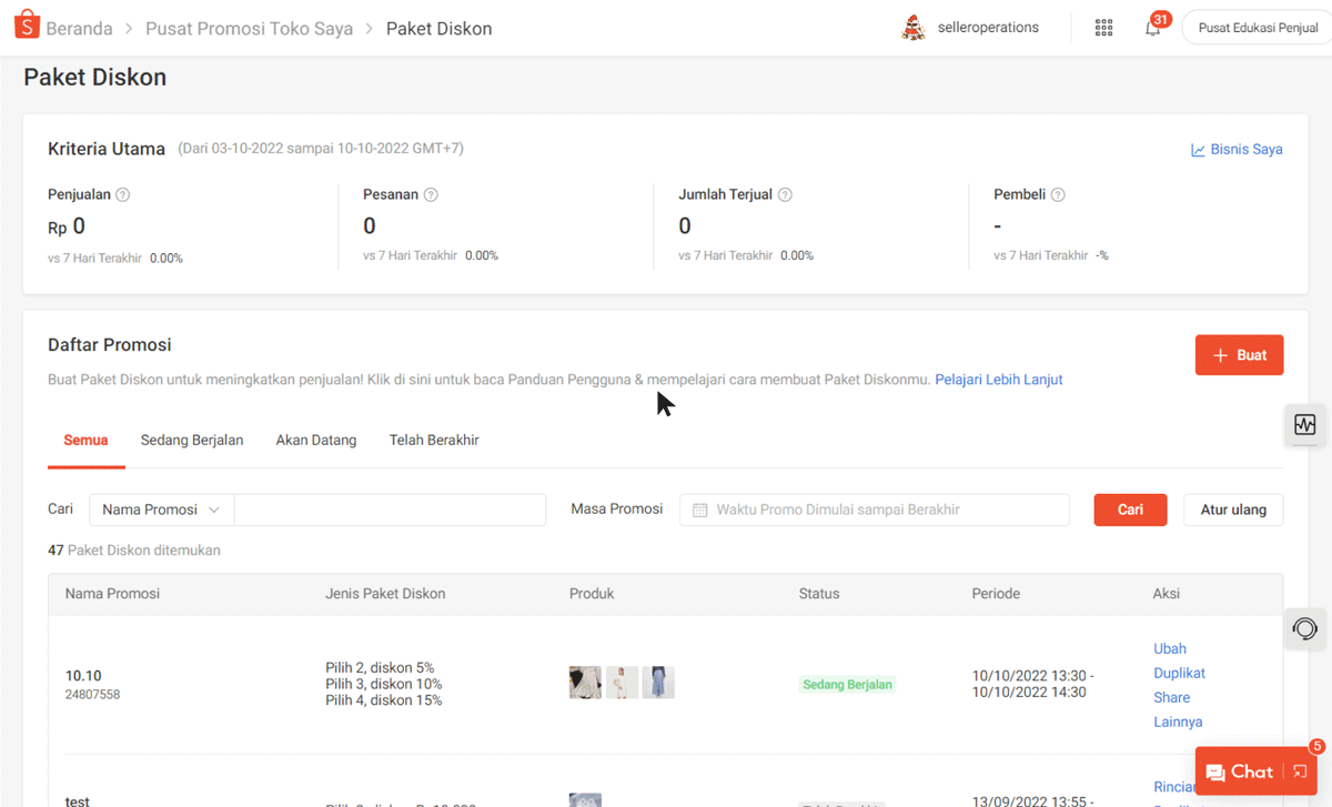 Jika Anda berhasil membuat Paket Diskon yang sukses dan efektif, Anda dapat Duplikat dan membuat perubahan jika diperlukan. Fungsi ini hanya dapat diakses di Seller Centre.