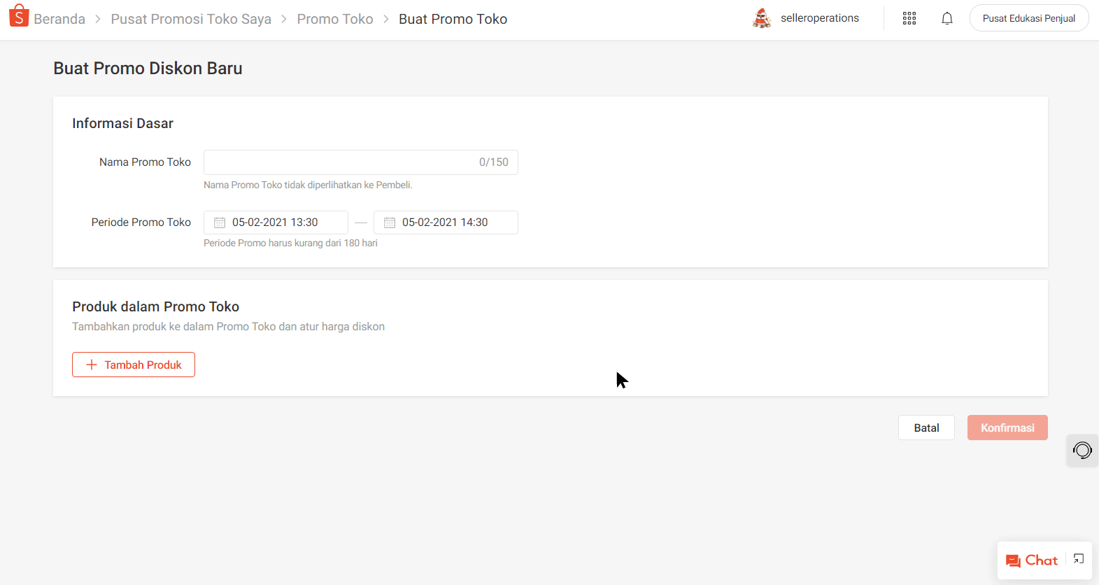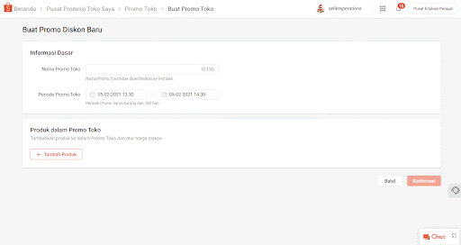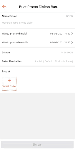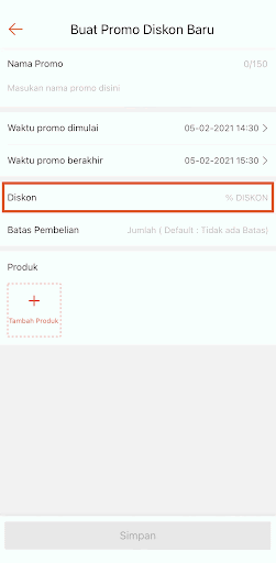 Pada aplikasi Shopee, Anda dapat mengubah diskon untuk semua produk melalui halaman Buat Promo Diskon Baru.