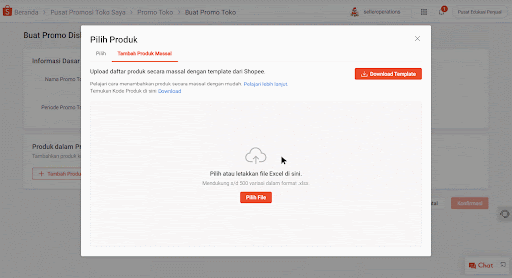 Selanjutnya, download template dari halaman Promo Toko untuk meng-upload produk secara massal. Silakan ikuti langkah-langkah di bawah ini.