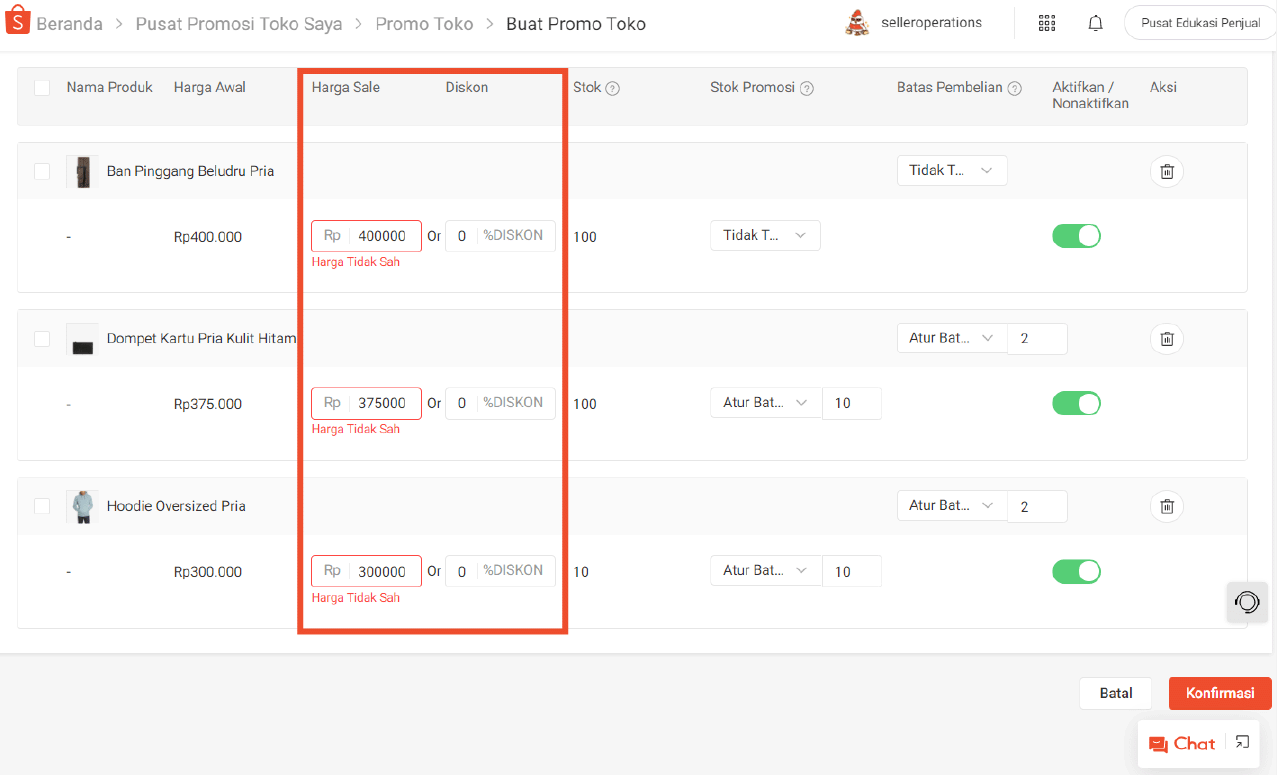 Anda tidak dapat mengubah beberapa rincian produk setelah Promo Toko dibuat karena beberapa informasi produk telah terkunci otomatis oleh sistem Shopee.