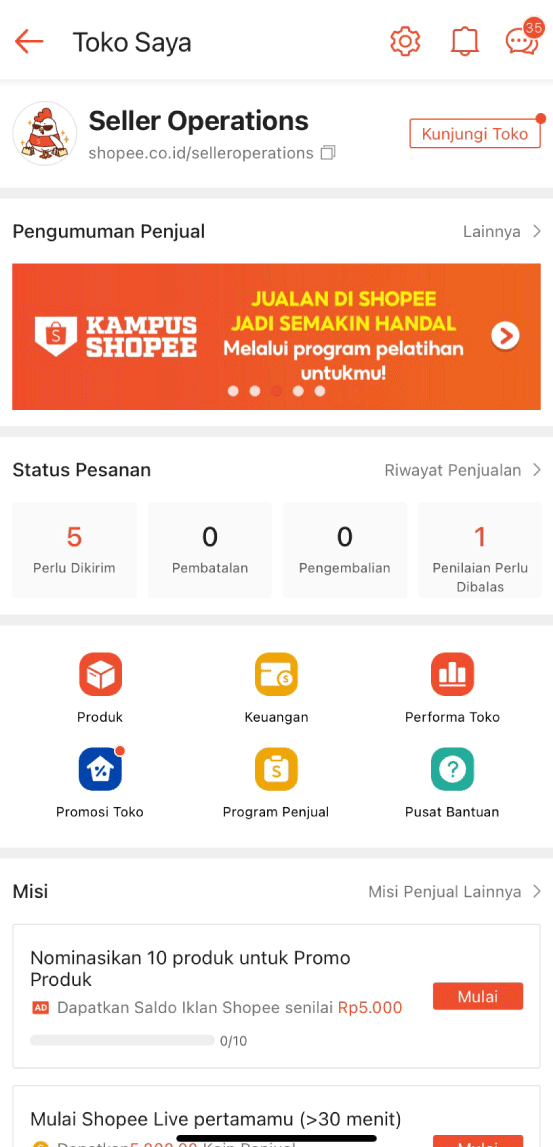 Untuk membuat Promo Toko melalui aplikasi Shopee, Anda dapat mengakses halaman Toko Saya, lalu pilih Promosi Saya dan pilih Promo Toko. Silakan ikuti langkah-langkah di bawah ini:
